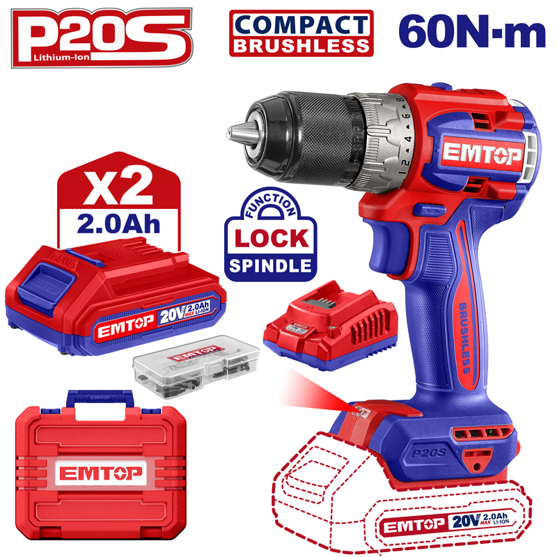 Бесщеточный двигатель Скорость холостого хода: 0-550/0-2000 об / мин Металлический патрон Быстрозажимной патрон с автоматической блокировкой Механическая 2-ступенчатая передача Функция блокировки шпинделя Встроенная светодиодная рабочая подсветка Комплектность: 47 Шт аксессуаров 2 батарейных блока емкостью 2,0 Ач 1 зарядное устройство Напряжение зарядки: 220-240 В ~ 50/60 Гц Упаковано в футляр для переноски
