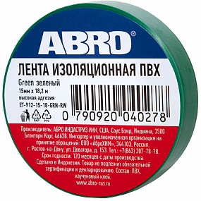 Характеристики «Изолента ПВХ зелёная (15мм*18,2м)»