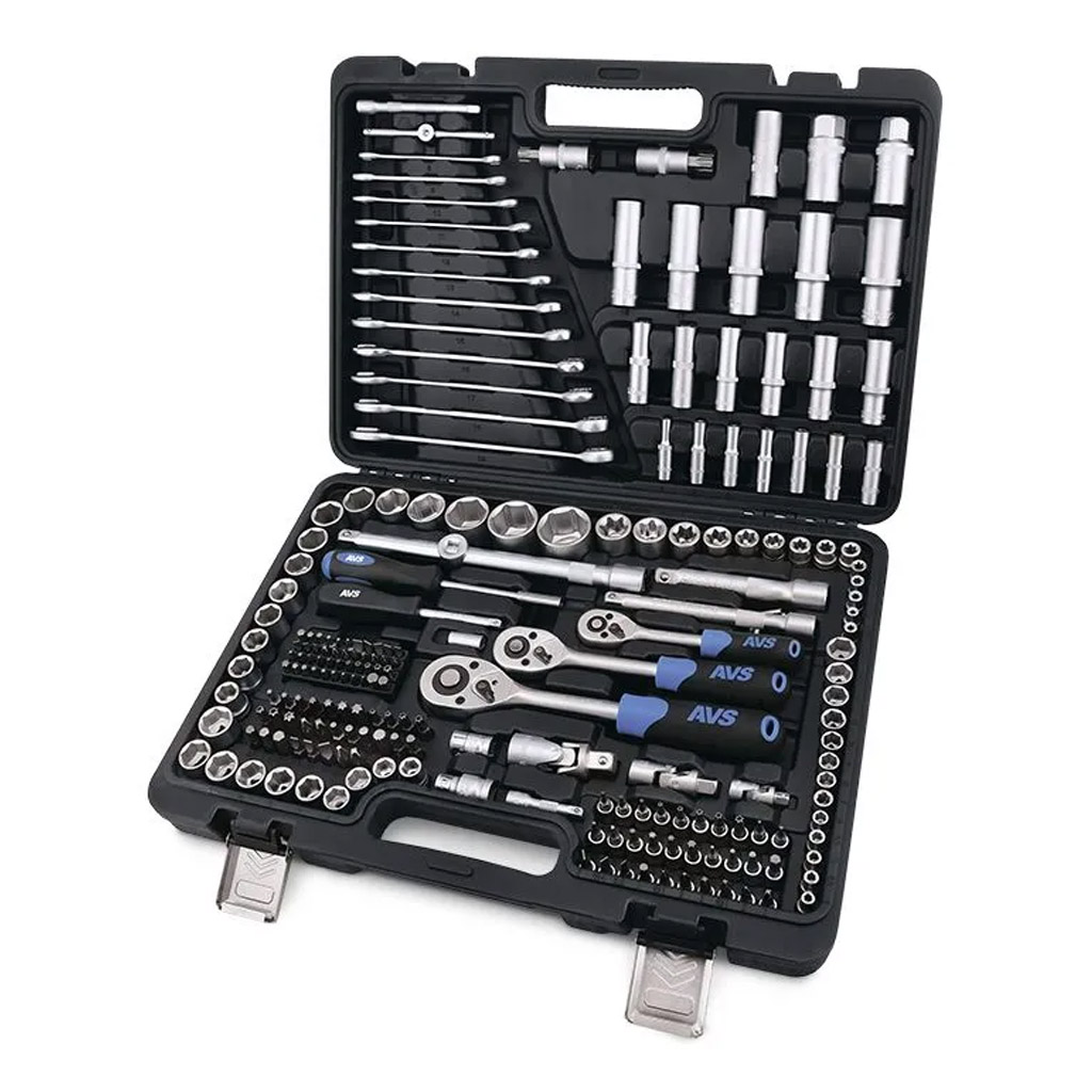Набор инструментов AVS предназначен для ремонта и обслуживания автомобиля. Может быть использован в гараже, в мастерской или в быту. Все компоненты набора отличаются высокой прочностью и долговечностью. Трещотки оснащены храповым механизмом на 45 зубцов и имеют двухкомпонентные эргономичные рукояти.