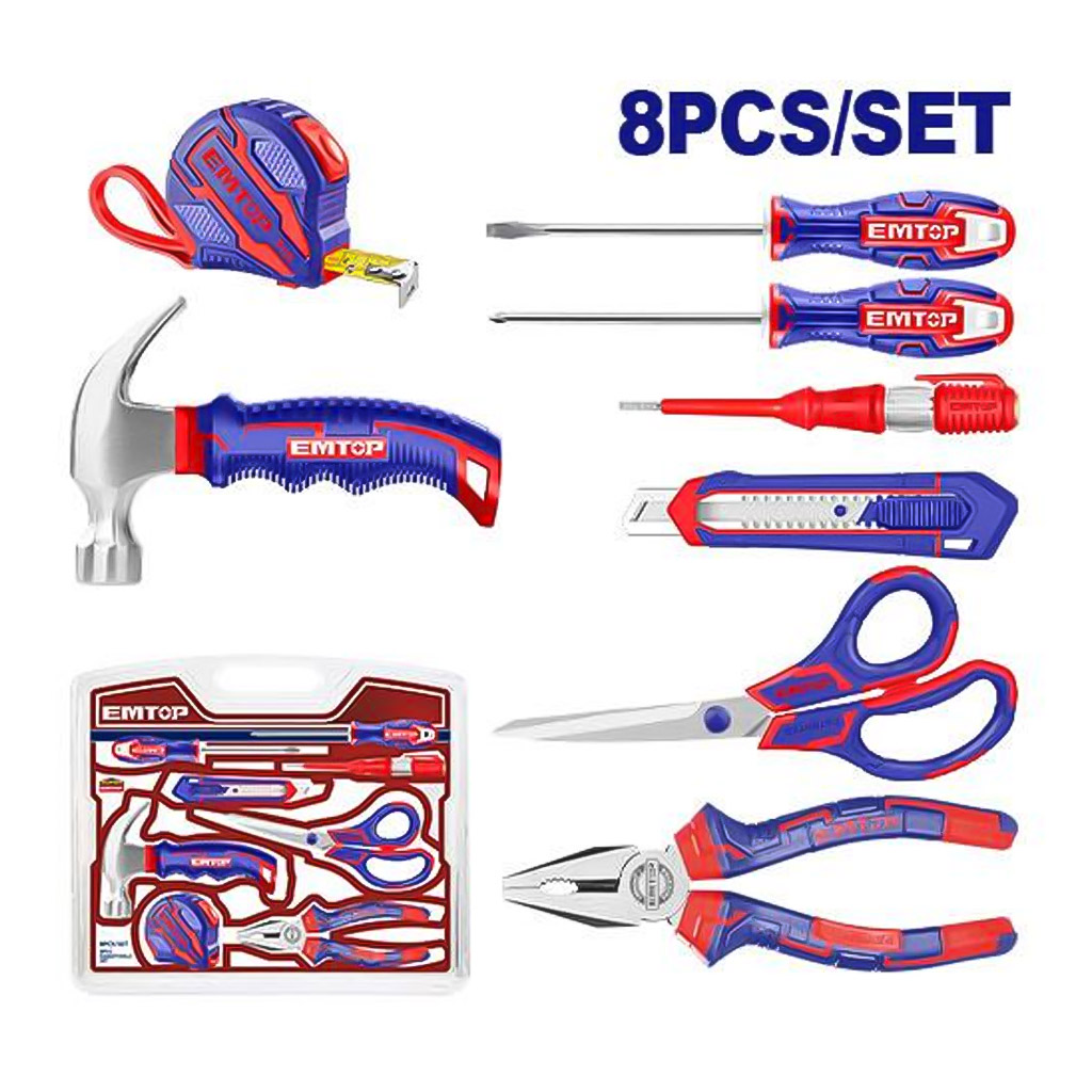 Набор инструментов EMTOP EHTS01081 простой и удобный набор для домашнего использования. Инструменты изготовлены из высококачественной хромованадиевой инструментальной стали. Двухкомпонентные эргономичные рукоятки плоскогубцев обеспечивают комфорт при работе и исключают выскальзывание инструмента из рук.