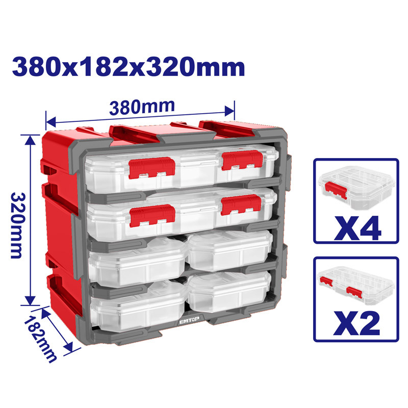 Система хранения с пластиковыми ящиками Прозрачный органайзер из 4 предметов Размер: 180x165x50 мм и