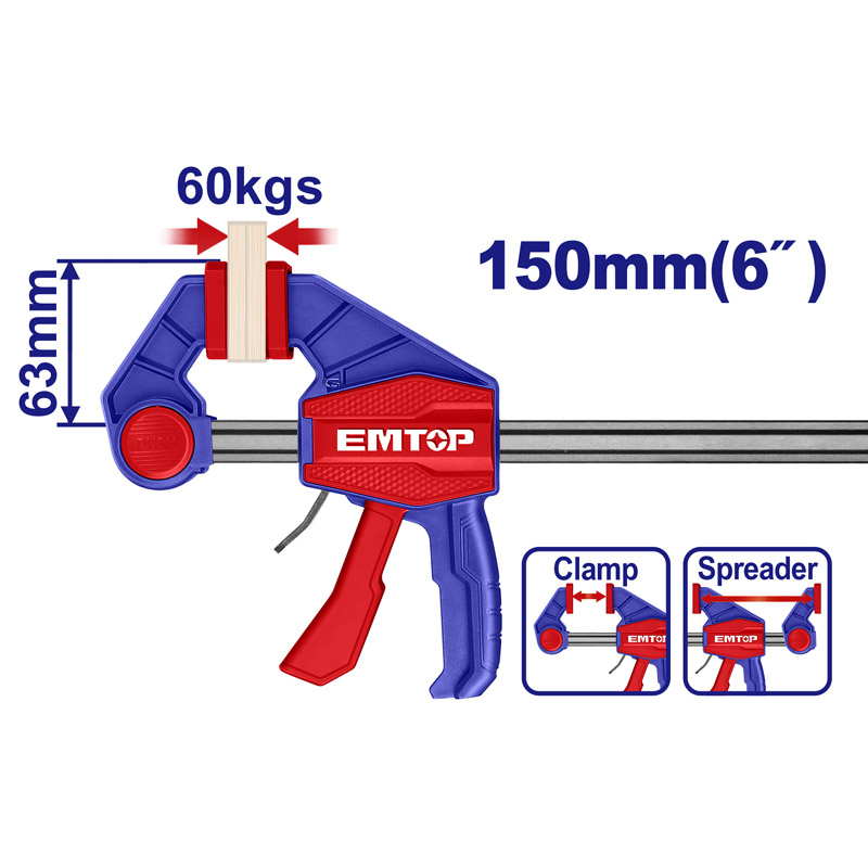 Струбцина быстрозажимная Размер зажима: 63x150 мм Максимальное усилие зажима: 60 КГС