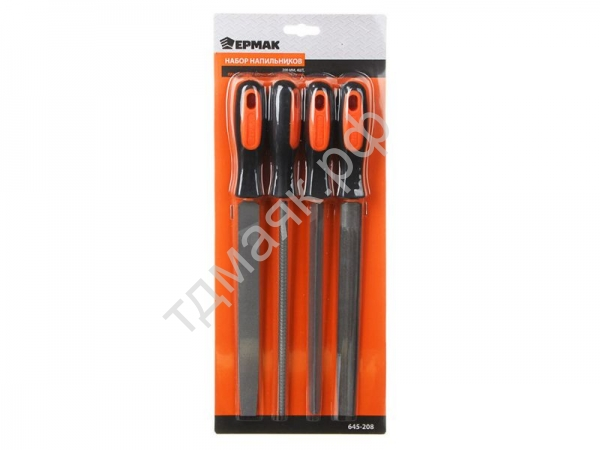 Набор напильников 200мм 4шт (кругл., полукругл., трёхгр., плоск.) пласт. ручка ЕРМАК