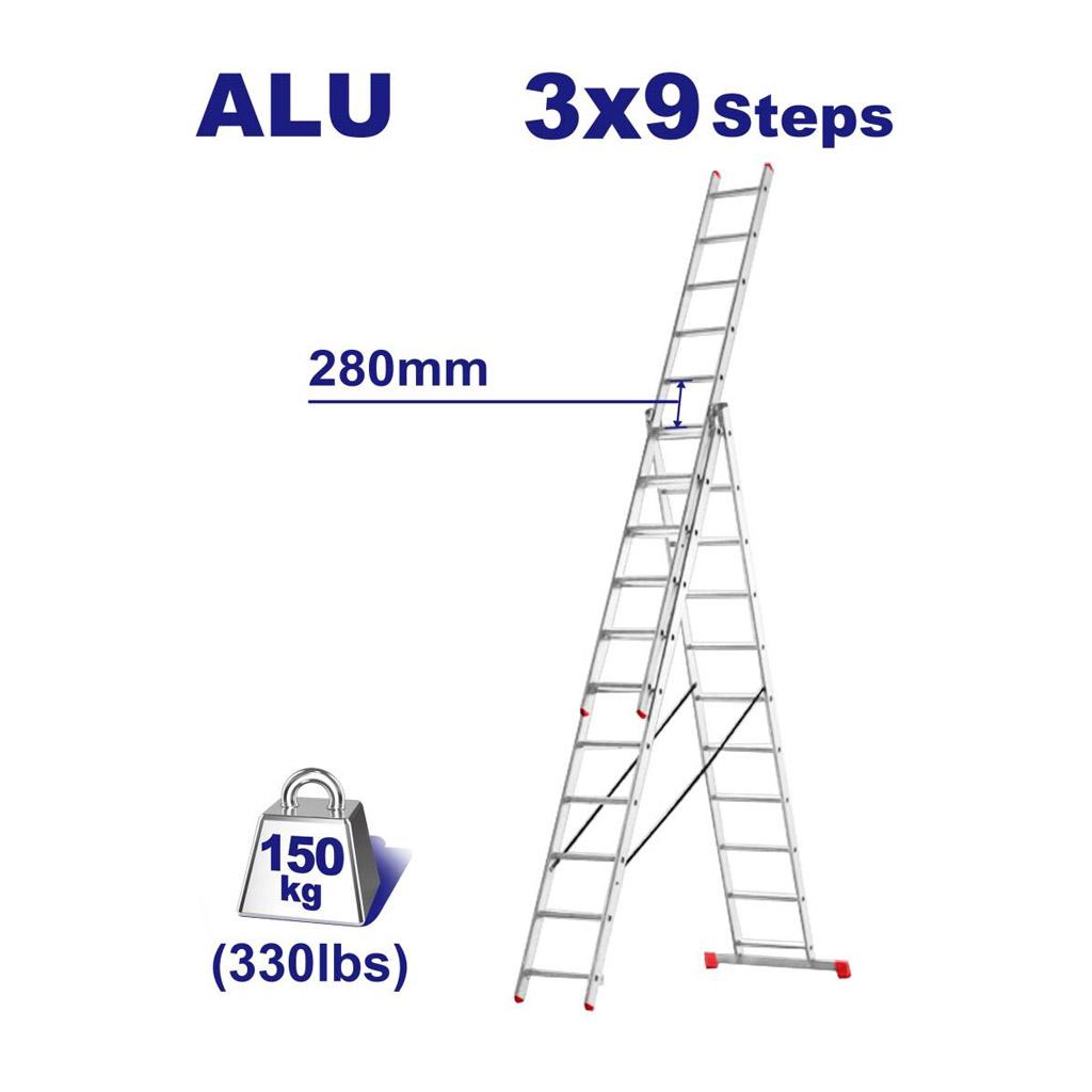 Лестница 3-х секционная EMTOP ELAD4391 представляет собой универсальную алюминиевую лестницу, которая идеально подходит для различных видов работ на высоте, как в домашних условиях, так и на профессиональных строительных площадках. Широкие и рифленые ступени обеспечивают надежное сцепление и безопасность при подъеме. На опорных ножках лестницы установлены противоскользящие накладки, которые предотвращают скольжение на различных поверхностях. Лестница оборудована надежным механизмом фиксации, который обеспечивает устойчивость и безопасность во время работы. Лестница легко складывается и транспортируется благодаря легкому весу и компактным размерам в сложенном состоянии. Алюминиевый корпус делает лестницу легкой, что облегчает ее переноску и установку.