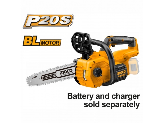 Аккумуляторная бесщеточная цепная пила INGCO CGSLI20128 INDUSTRIAL незаменимый помощник на садовом участке. Цепная пила применяется для валки деревьев и заготовки дров. Модель: INGCO CGSLI20128