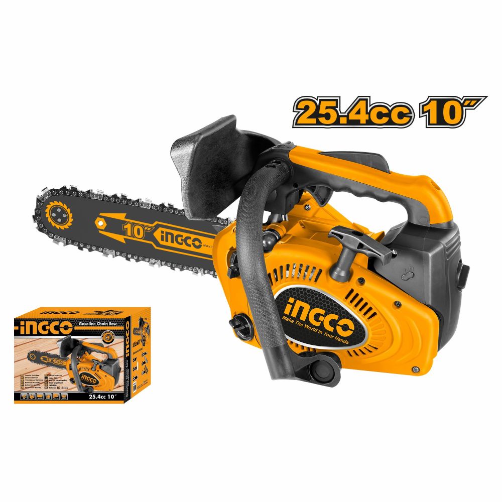Бензопила цепная INGCO GCS5261011 0,7 кВт (1 л.с.) 10" - инструмент мощностью 1 л.с. для работ по уходу за деревьями и распиливания древесины. Рабочий объем: 25,4 куб. см