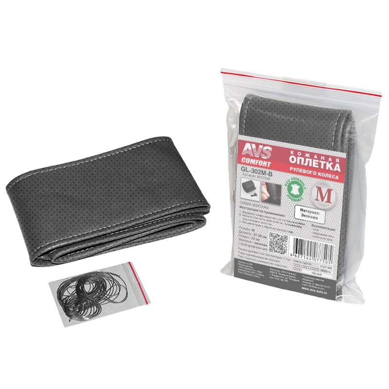 Характеристики «Оплетка на руль (эко-кожа) AVS GL-302M-B (размер M, черный) со шнурком (перфорированная)»