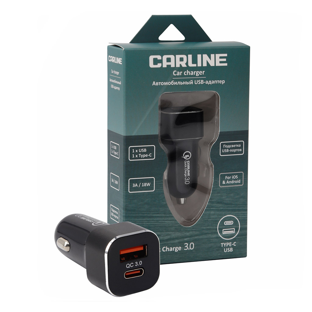 Характеристики «USB автомобильное зарядное устройство 2 порта (USB QC 3.0 + PD Type C), черный»
