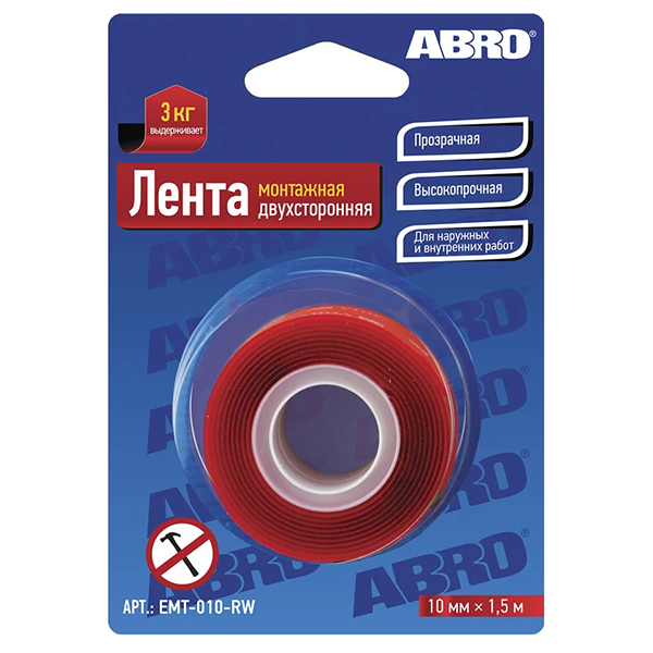 Характеристики «Лента клейкая двухсторонняя монтажная (10мм*1,5м)»