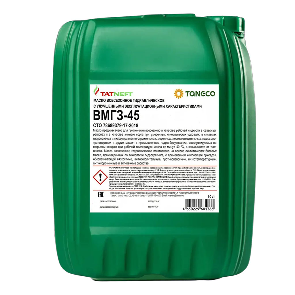 Характеристики «Масло гидравлическое TANECO ВМГЗ-45 Канистра 20 л»