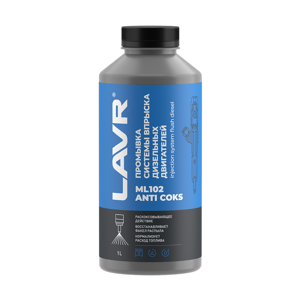 ML102 – промывка с раскоксовывающим эффектом для безразборной очистки дизельных систем впрыска. Запатентованный пакет моющих присадок LAVR DSP/DET™ восстанавливает факел распыла форсунок, устраняет кокс и нагар с днищ поршней и поршневых колец. Промывка предназначена для применения со специальными пневматическими станциями и подходит для всех типов систем впрыска: Сommon Rail, насос-форсунок и прочих. Замена масла и свечей после промывки не требуется.