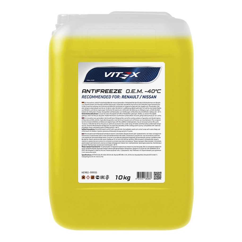 Характеристики «Жид-ть охл. низкозамерзающая Antifreeze «Vitex O.E.M. for Renault Nissan» Антифриз 10кг»