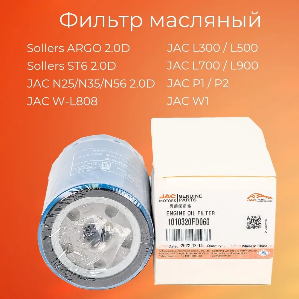 Отзывы о «Фильтр масляный для А/М Sollers ARGO 2.0D, JAC N35/25, T6, T8»