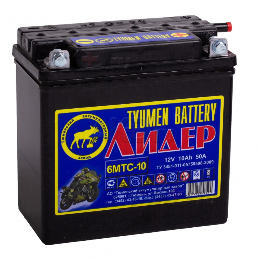 АКБ 6МТС -10 Тюмень "Лидер" сух.заряж.болт пуск. ток 50, плюс справа гарантия 12 месяцев