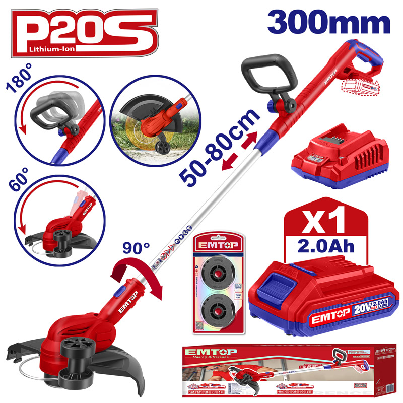 Аккумуляторный тример Напряжение: 20 В Скорость холостого хода: 8200 об/мин Диаметр резания: 300 мм