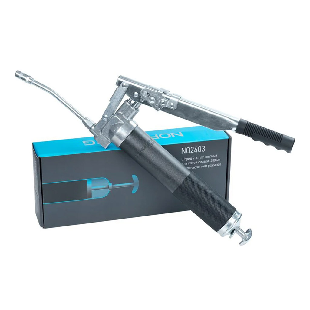 Шприц двухплунжерный для густой смазки, с переключением плунжеров, 400 мл NORDBERG NO2403