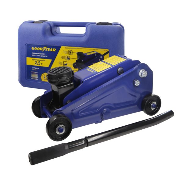 Удобный подкатной домкрат для подъема всех типов легковых автомобилей. Незаменимый помощник в гараже. Необходим каждому автовладельцу при смене автоколеса. Домкрат оснащен системой легкого подъема рабочей части «Easy lift», которая позволяет быстро и без лишних усилий поднять автомобиль. Домкрат осуществляет плавное опускание груза и подъем на высоту до 400 мм. Удобная круглая резиновая опорная площадка позволяет не повредить порог автомобиля, а четырехточечная конструкция обеспечивает высокую устойчивость домкрата. Компактный домкрат подходит для подъема груза весом до 2,5 тонны, что делает его универсальным и для всех легковых авто, в том числе для кроссоверов.