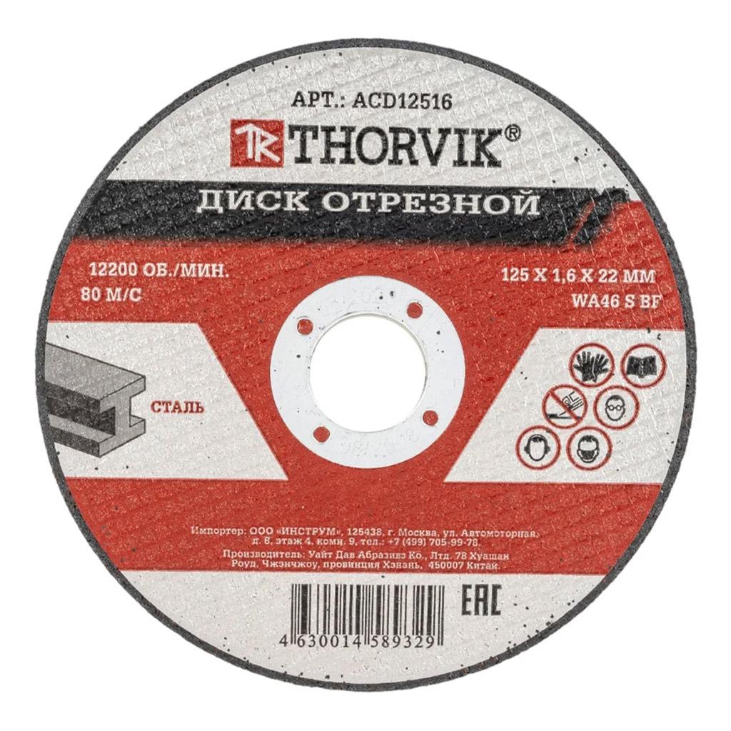 Характеристики «Диск отрезной абразивный по металлу, 125х1.6х22.2 мм»
