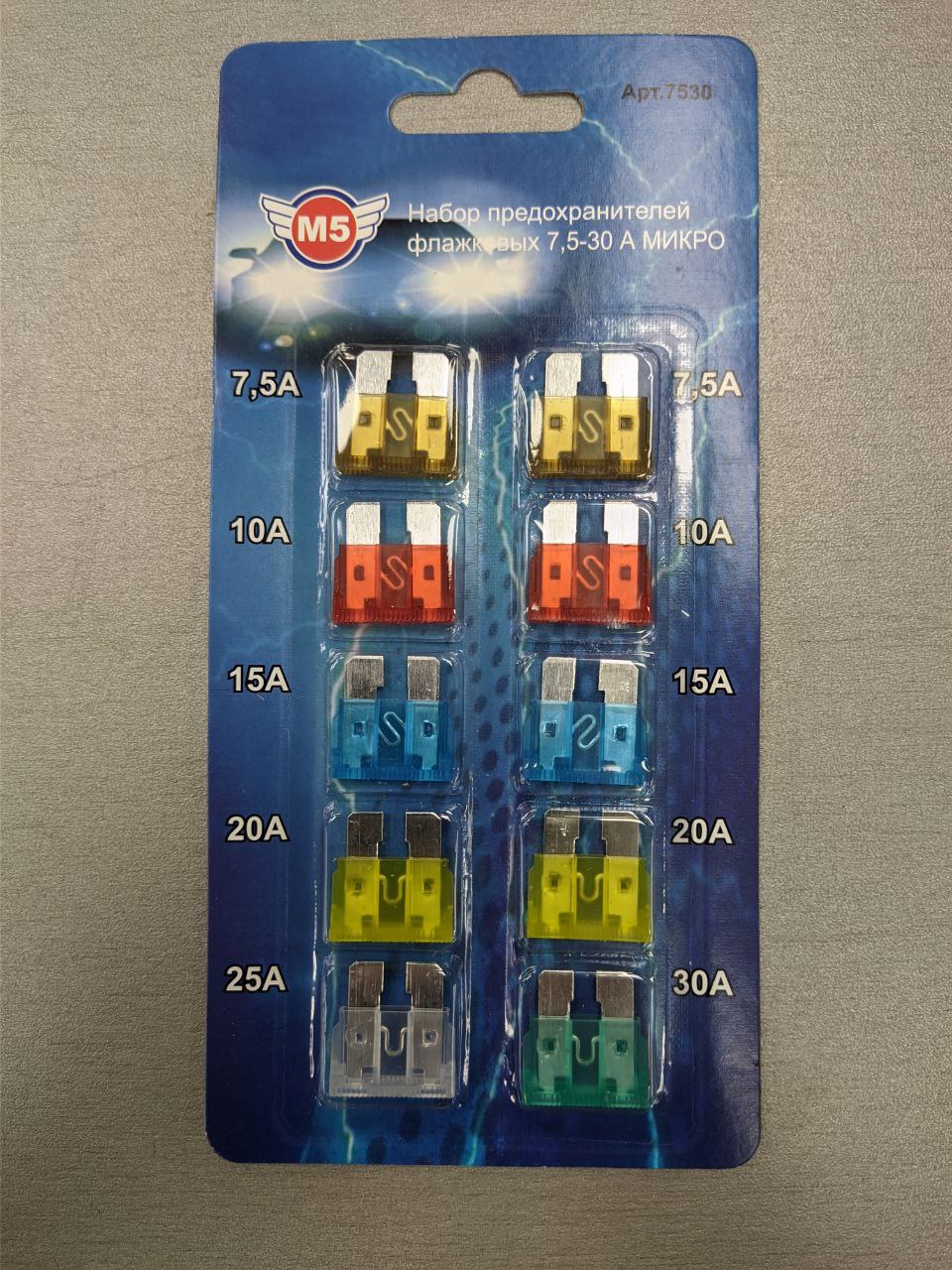 Набор предохранителей МАЯК М5 "стандарт" (7,5А, 10А, 15А, 20А - 2шт; 25А и 30А - 1шт)