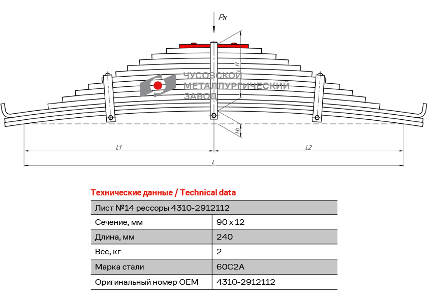 Характеристики «Лист №12 задней рессоры КамАЗ 65115, 43118, 53229 (240*90*12)»
