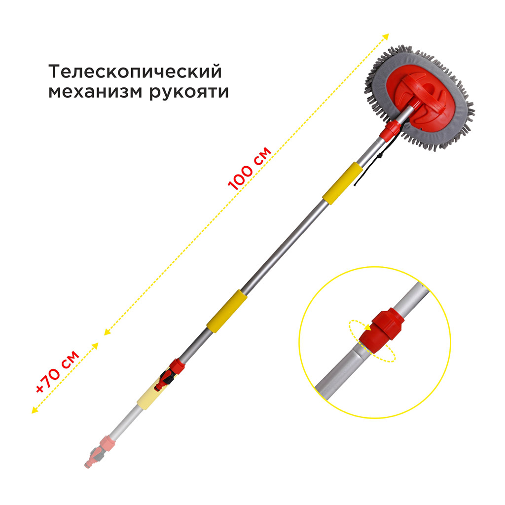 Отзывы о «Щетка телескопическая с краном, щеткой из микрофибры 25см 100-170см»