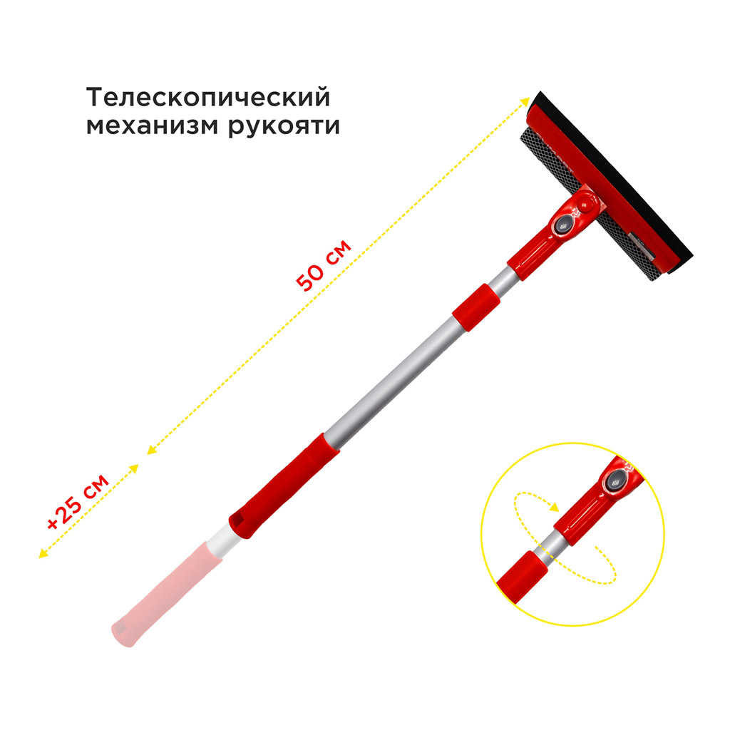 Характеристики «Швабра телескопическая для мытья стекол с поролоном и водосгоном 50-75см»