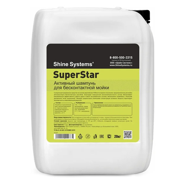Характеристики «Шампунь для бесконтактной мойки SHINE SYSTEM SuperStar, 20кг»