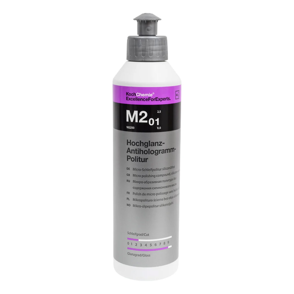 M2.01 предназначена для окончательной обработки ЛКП, поликарбоната и других материалов с помощью полировальной, роторной или ротекс-машинки. Применяется для удаления неглубоких потёртостей и рисок, полученных в процессе эксплуатации поверхностей, а также для полировки предварительно отшлифованных абразивом (не грубее Р3000) свеженанесённых лаков и эмалей.