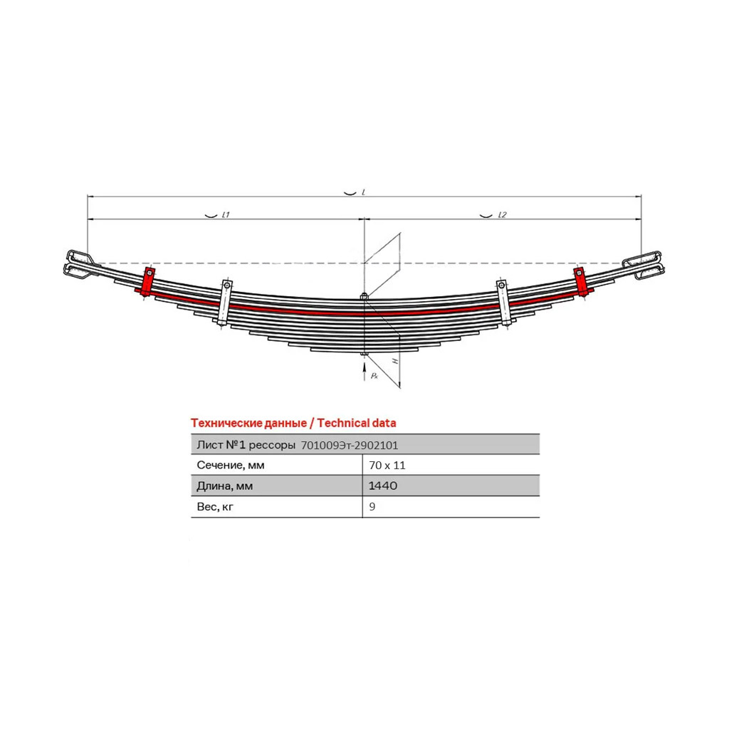 Характеристики «Лист №1 передней рессоры автобус ЭТАЛОН (1440*70*10)»