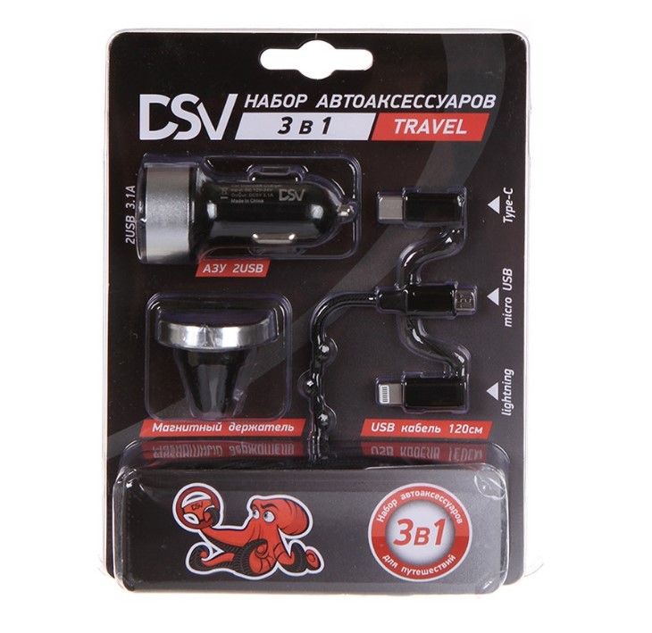 Характеристики «Автомобильное зарядное устройство+держатель телефон+кабель "DSV" 3 в 1 R77003»