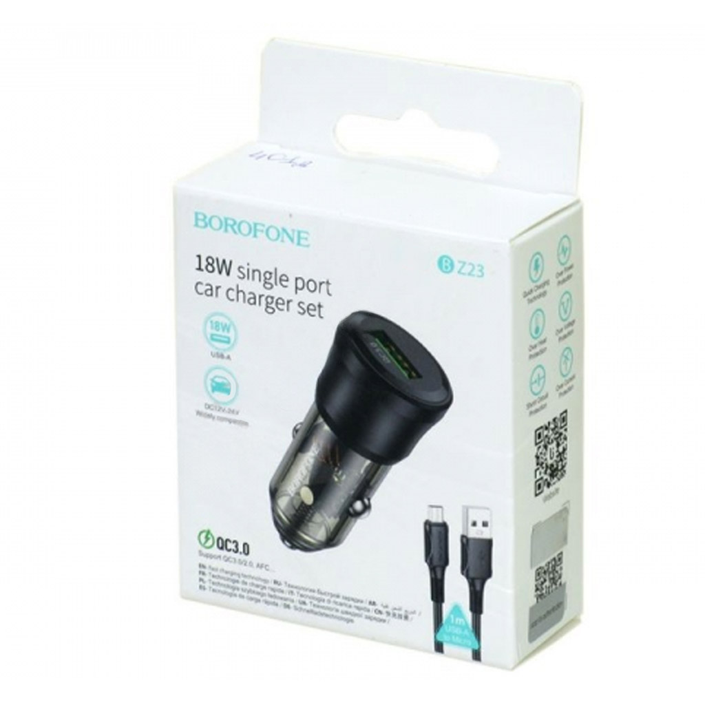 АЗУ в прикуриватель 1USB3.0 Quick Charger + кабель micro USB/Android черный, прозрачный черный